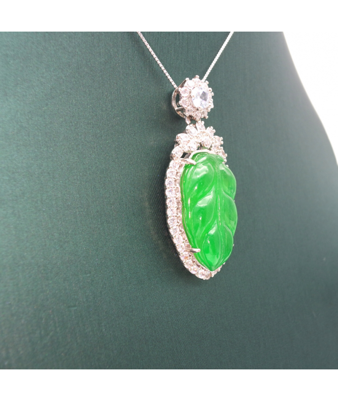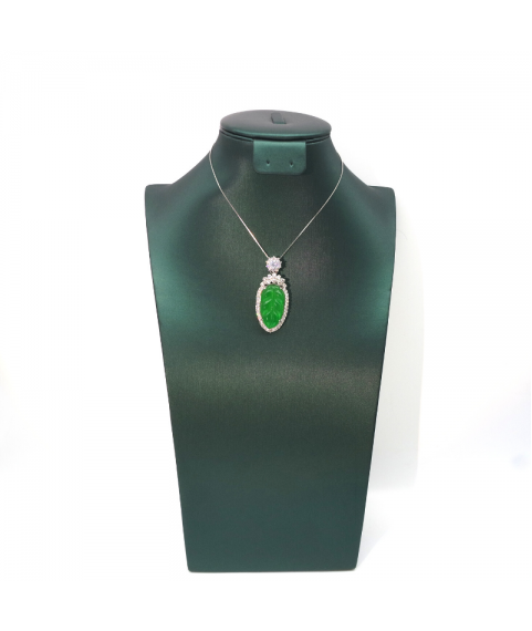 Emerald carved cabbage Silver Edge Diamond Pendant